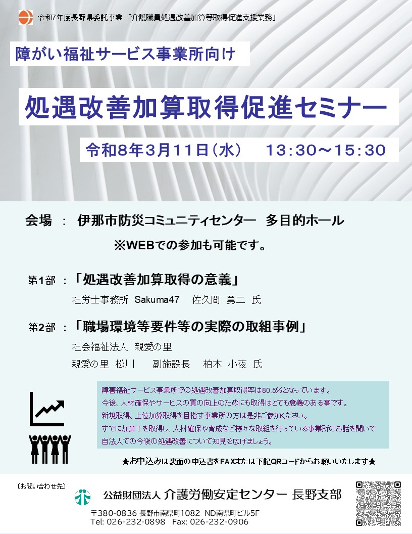 介護労働安定センターでは令和7年度も処遇改善加算取得促進支援業務を行っております。