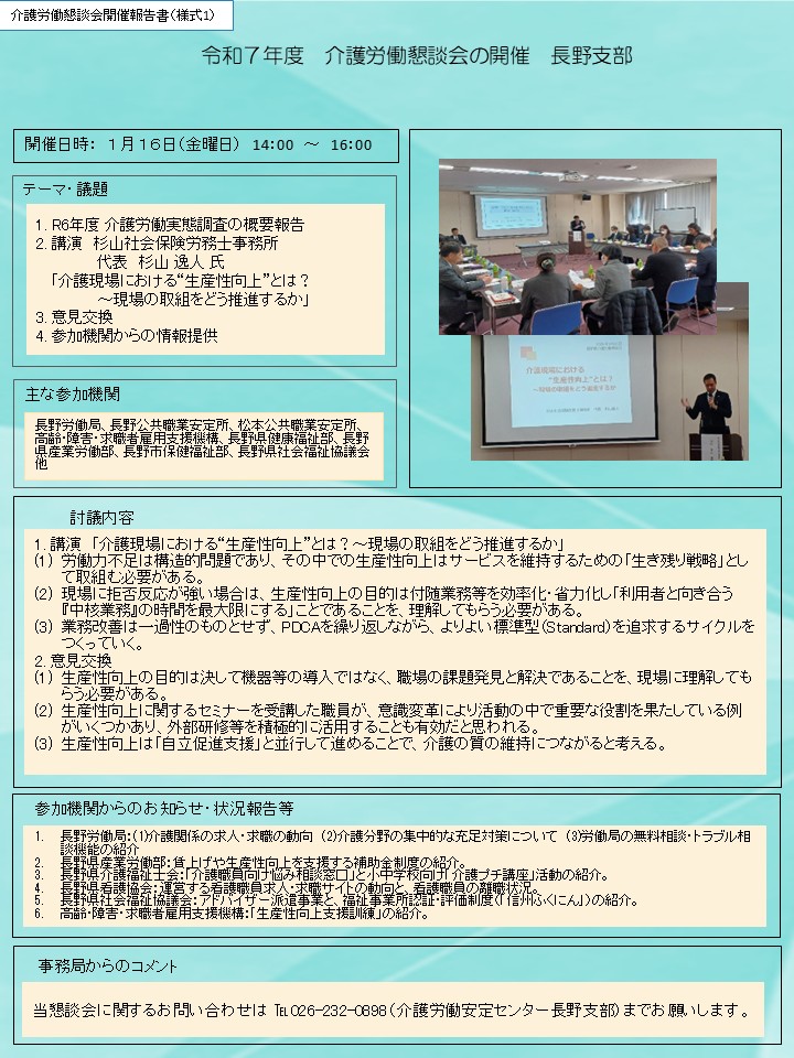 - 介護労働懇談会を開催いたしました。