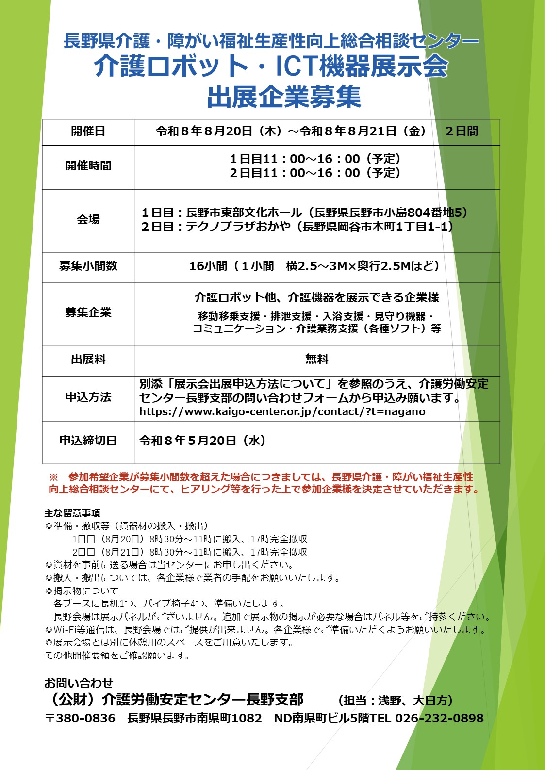 令和8年8月20、21日に介護ロボット・ICT機器展示会の開催を予定しております。