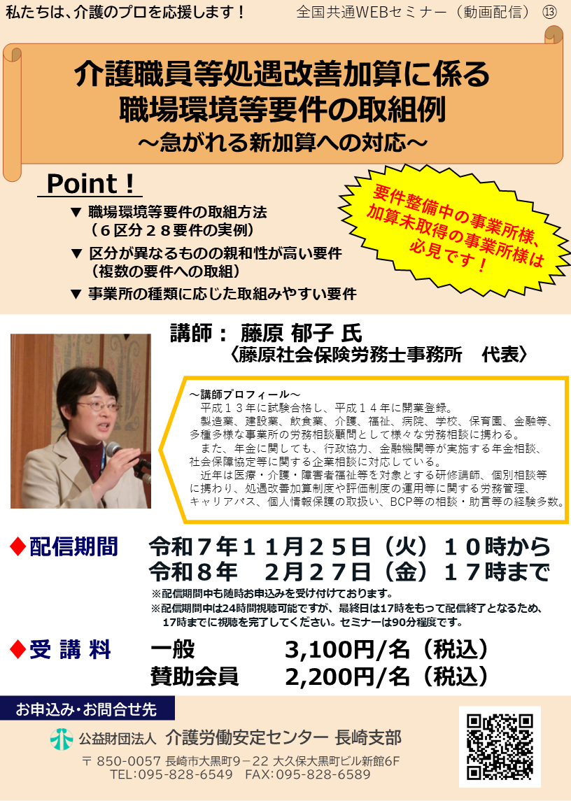 介護職員等処遇改善加算に係るセミナー配信のお知らせ