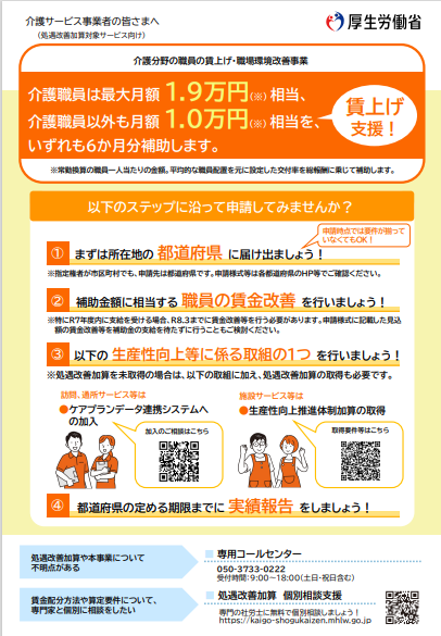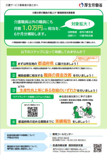 - 介護分野の職員の賃上げ・職場環境改善事業のお知らせ【厚生労働省】