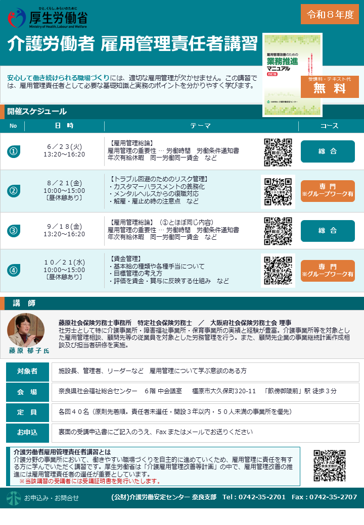 - 介護労働者 雇用管理責任者講習 〔令和8年度〕