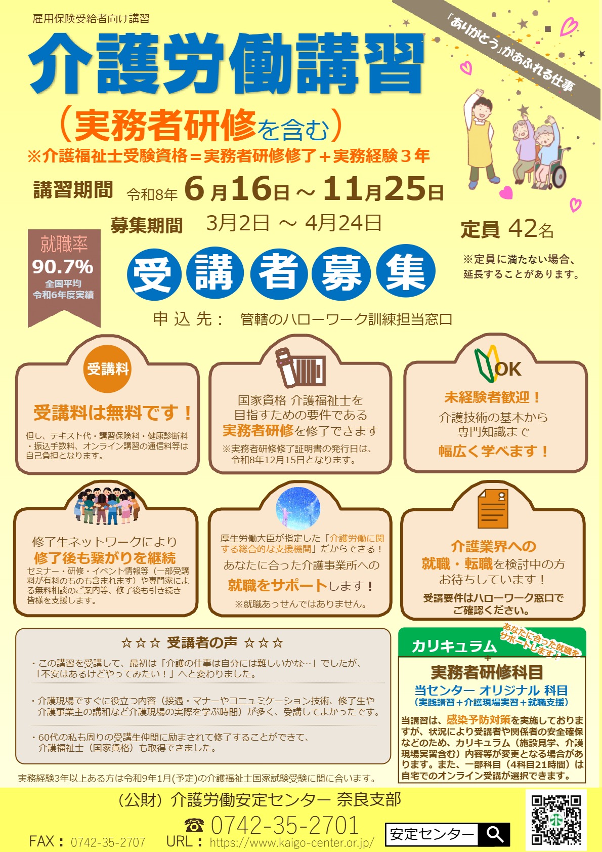 - ☆彡令和8年度介護労働講習(実務者研修を含む)募集開始しました☆彡