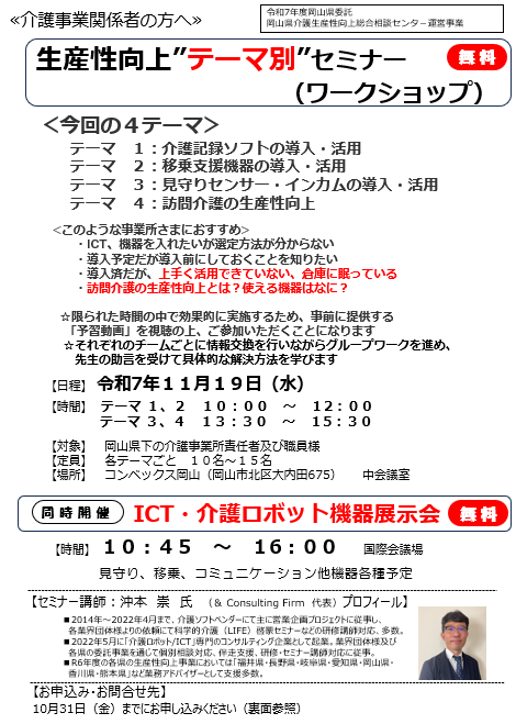 【機器展示会募集は継続実施中 〈無料〉】 介護生産性向上テーマ別セミナー(ワークショップ)は募集終了しました