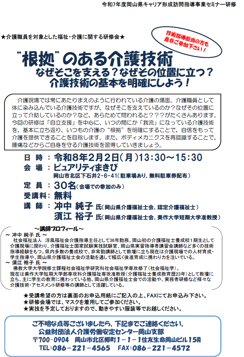 - 介護技術研修のご案内(令和7年度岡山県キャリア形成訪問指導事業セミナー型研修)