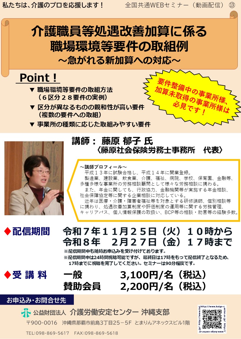 - WEBセミナー「介護職員等処遇改善加算に係る職場環境等要件の取組例」~急がれる新加算への対応~