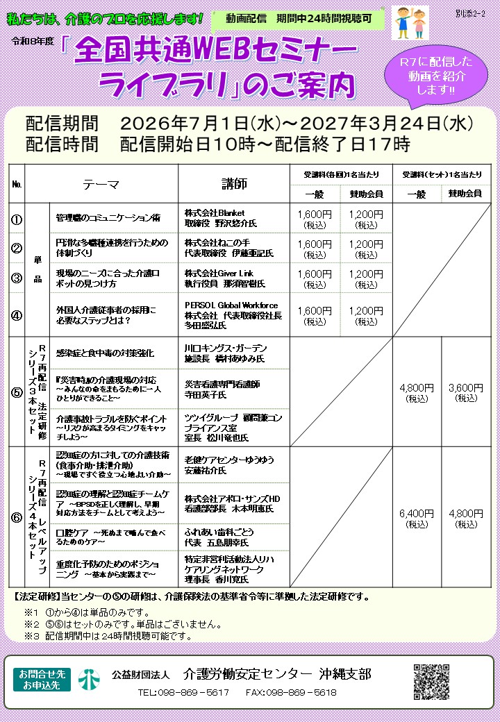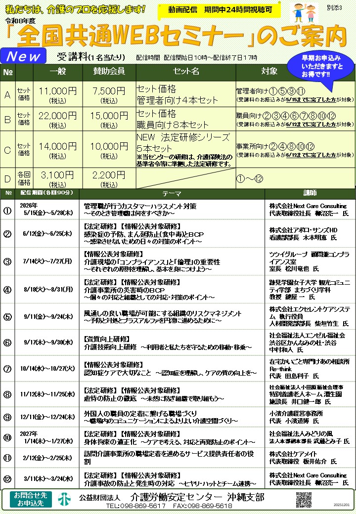 - 「令和8年度全国共通Webセミナー」及び 「全国共通Webセミナーライブラリ(再配信)」のご案内