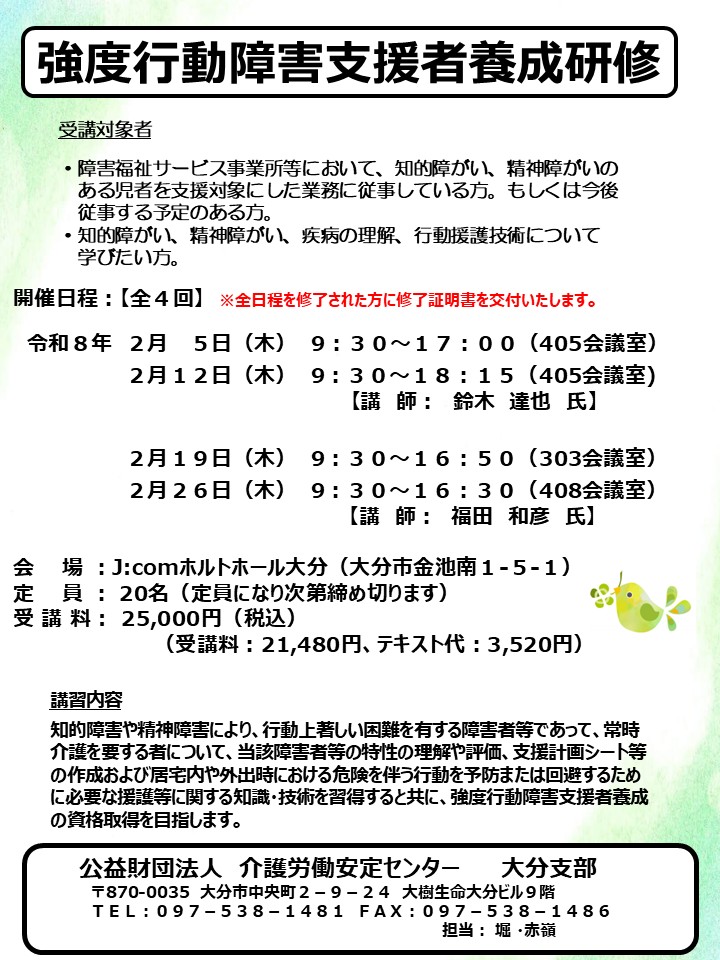 - 強度行動障害支援者養成研修のご案内