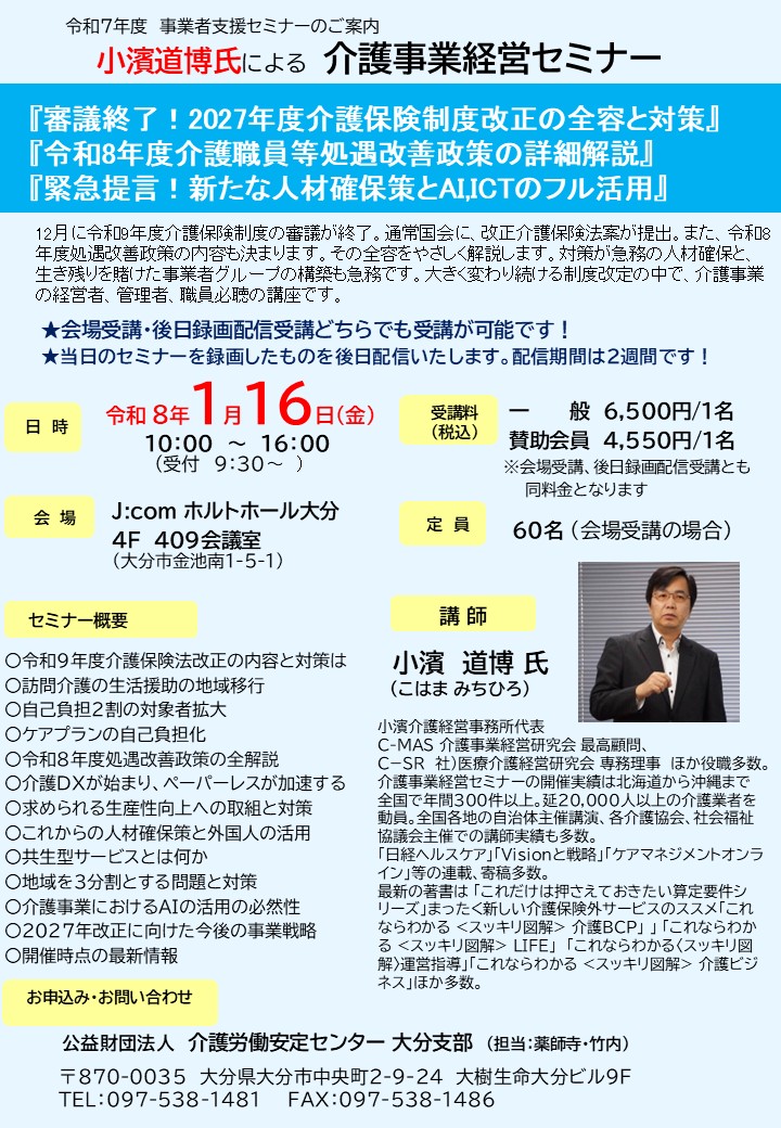 - 令和8年1月16日開催小濱道博氏による「介護事業経営セミナー」開催のご案内