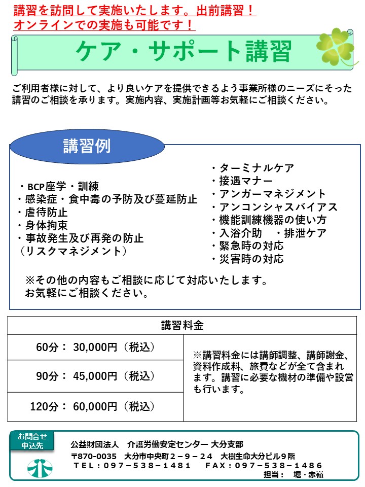 - 【ケアサポート講習】オーダーメイドで講習計画・実施いたします!