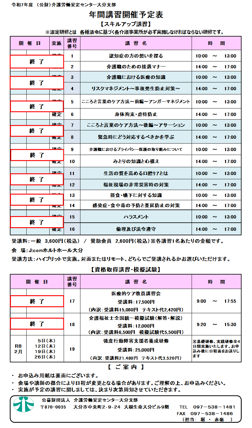 - 令和7年度能力開発講習 年間講習開催予定表のご案内