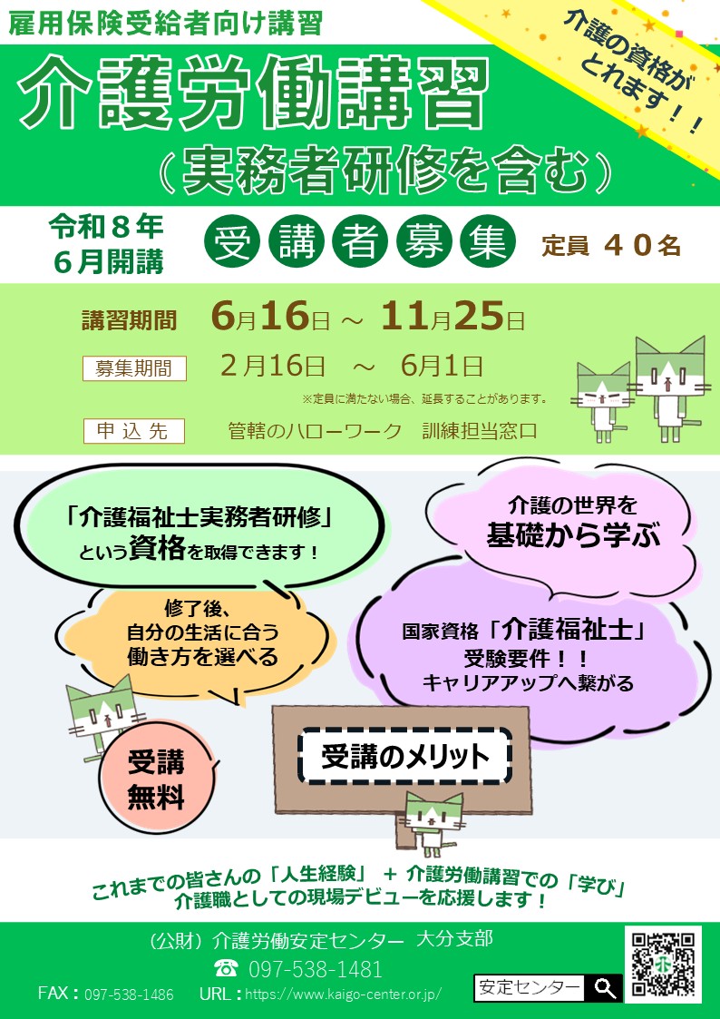 - 令和8年度介護労働講習(実務者研修を含む)受講者募集中!!