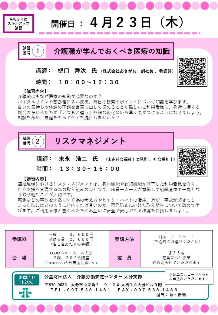- 4月23日 開催! 介護職が学んでおくべき医療の知識/リスクマネジメント