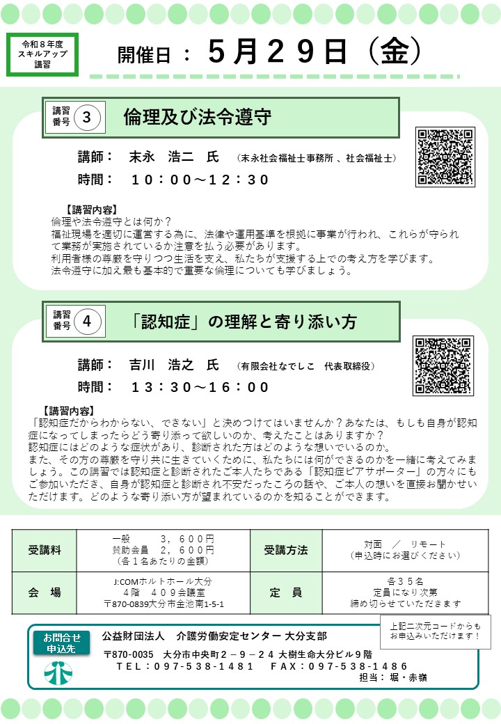 5月29日 開催! 倫理及び法令遵守/「認知症」の理解と寄り添い方