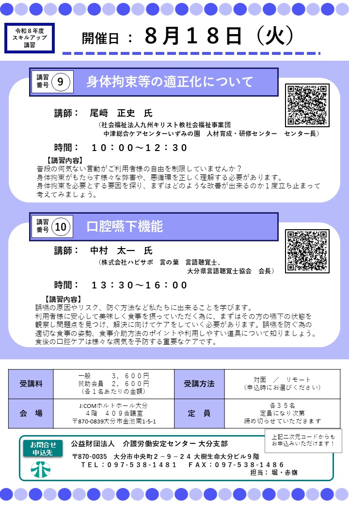 ◎令和8年度スキルアップ講習のご案内