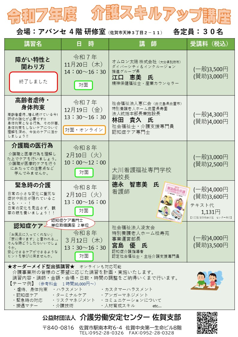 【会場】 アバンセ 4階研修室 【講師】 宮島 優 氏 社会福祉法人 凌友会 特別養護老人ホーム桂寿苑 事業運営部長 認知症介護指導者・認定社会福祉士・主任介護支援専門員 【定員】 30名