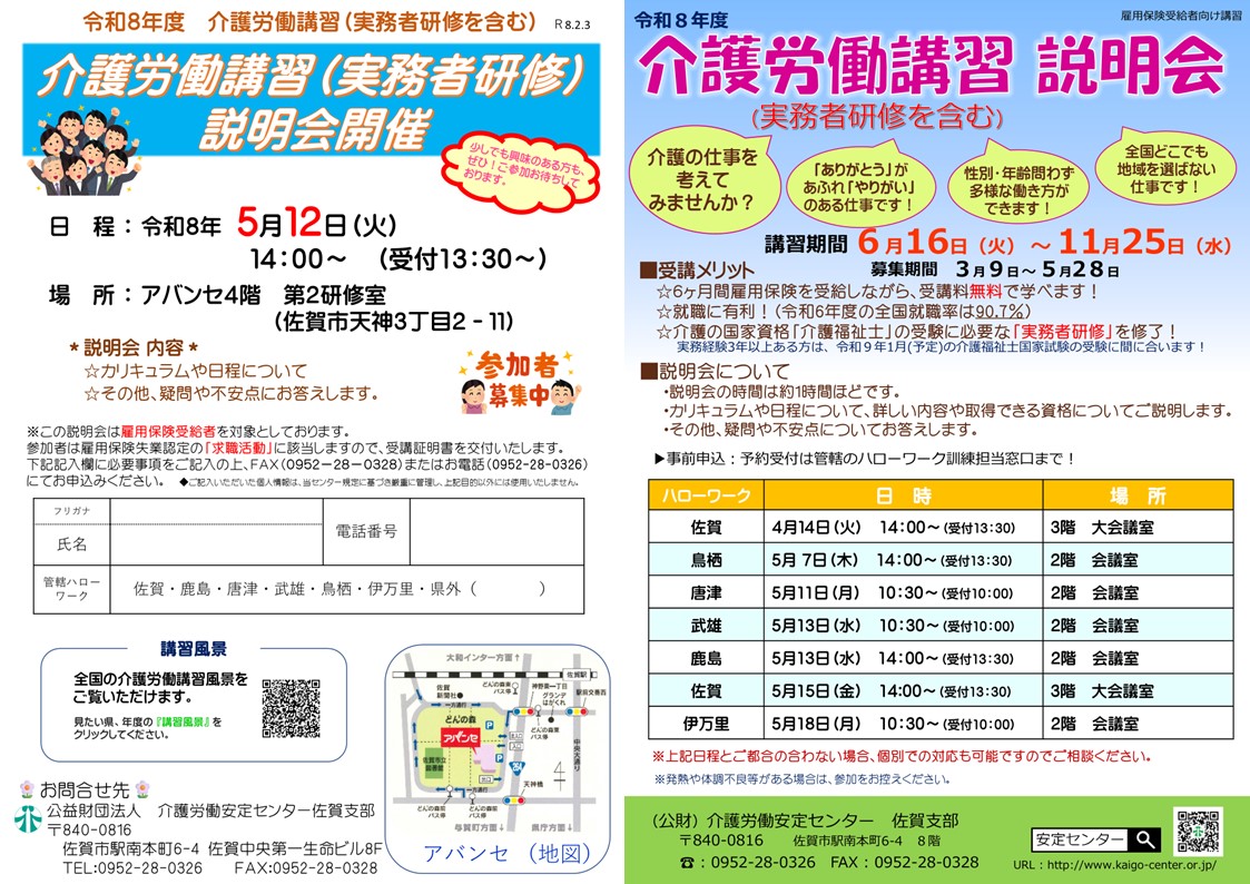 参加申し込み方法 ⇒ リーフレットにご記入後、介護労働安定センター佐賀支部へFAX