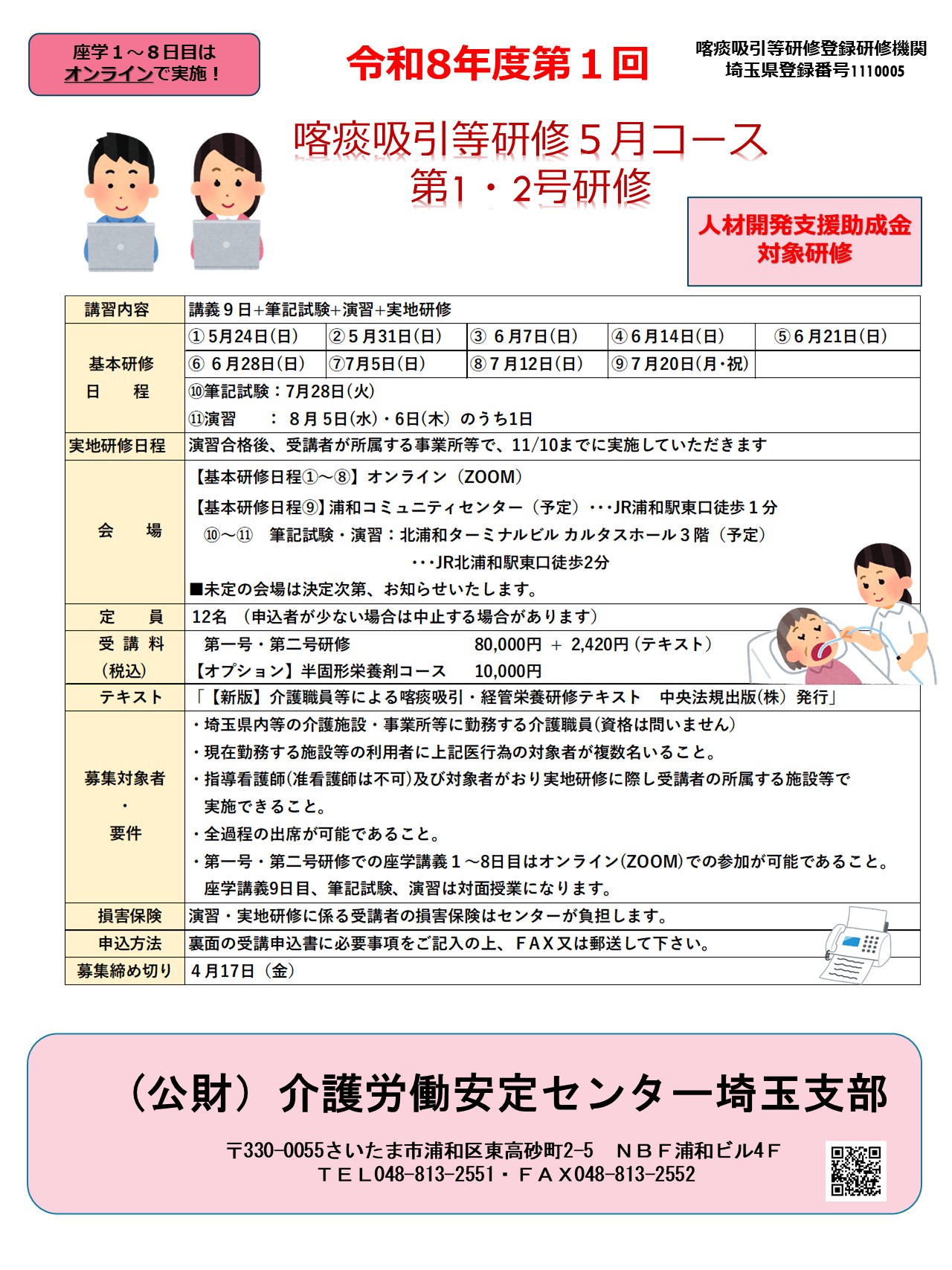 - 【募集】令和8年度 第1回喀痰吸引等研修5月コース第1・2号研修を開催します