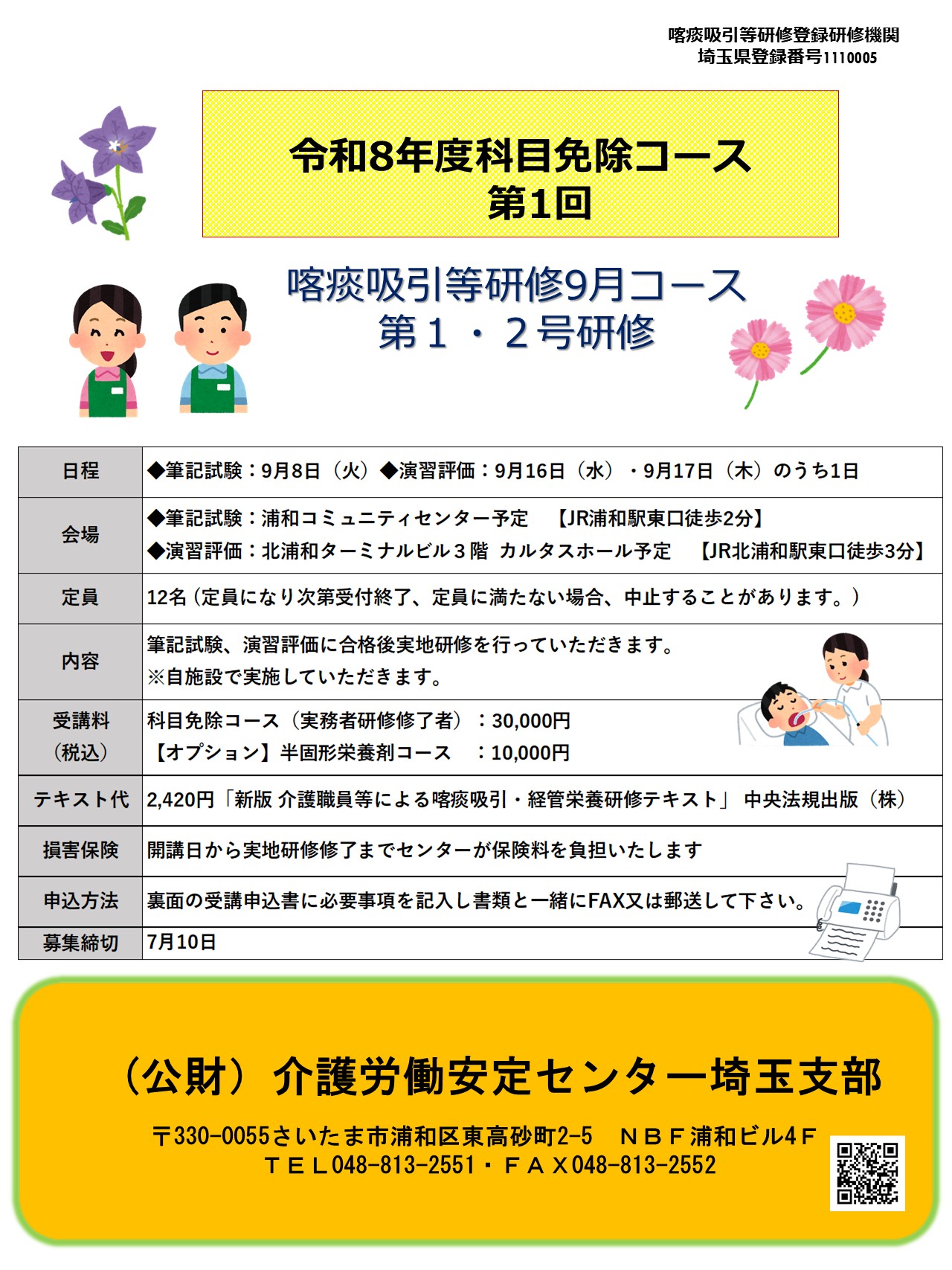 - 【募集】令和8年度 科目免除コース第1回喀痰吸引等研修9月コース第1・2号研修を開催します