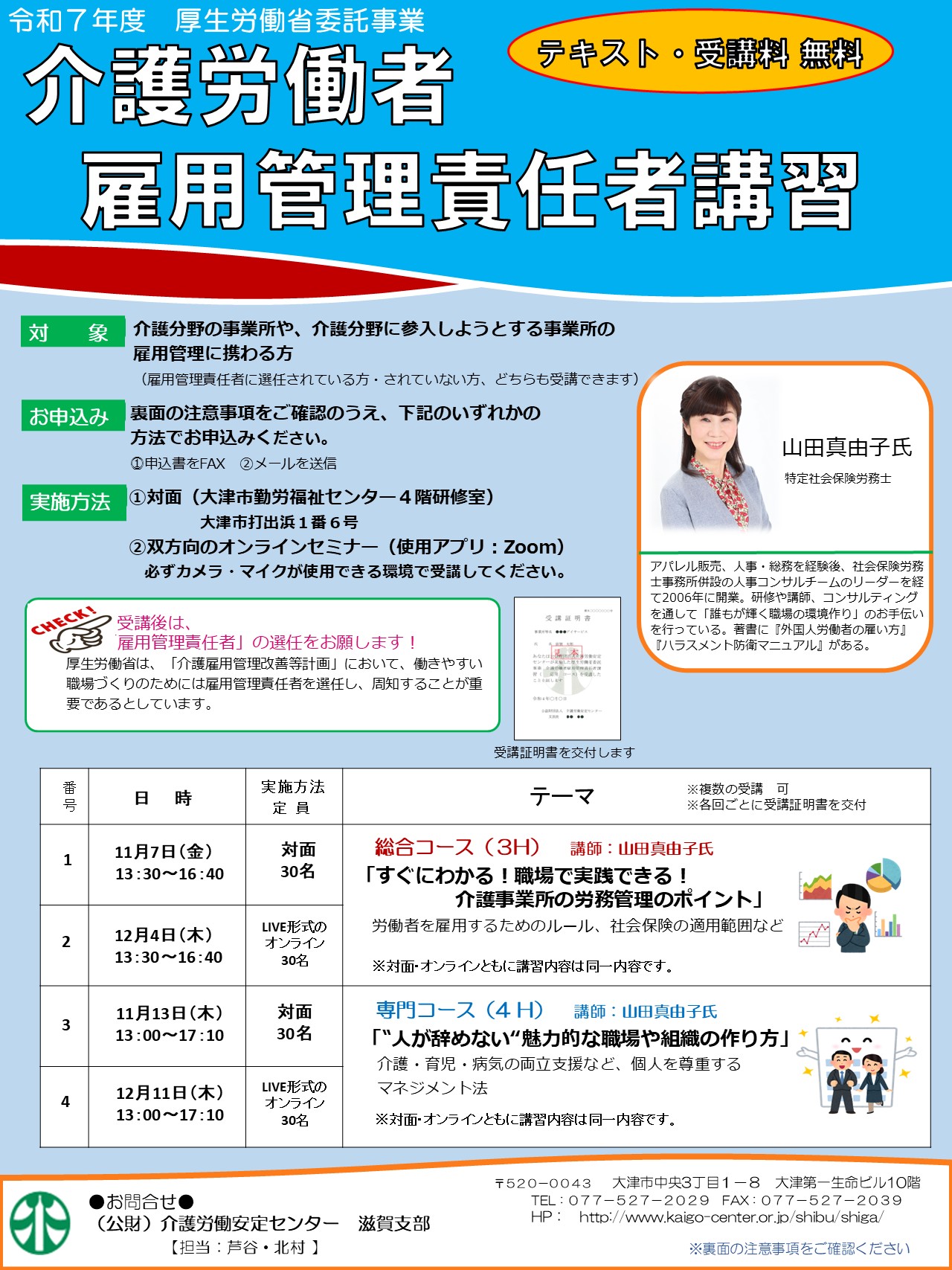厚生労働省委託事業「介護労働者雇用管理責任者講習」のご案内