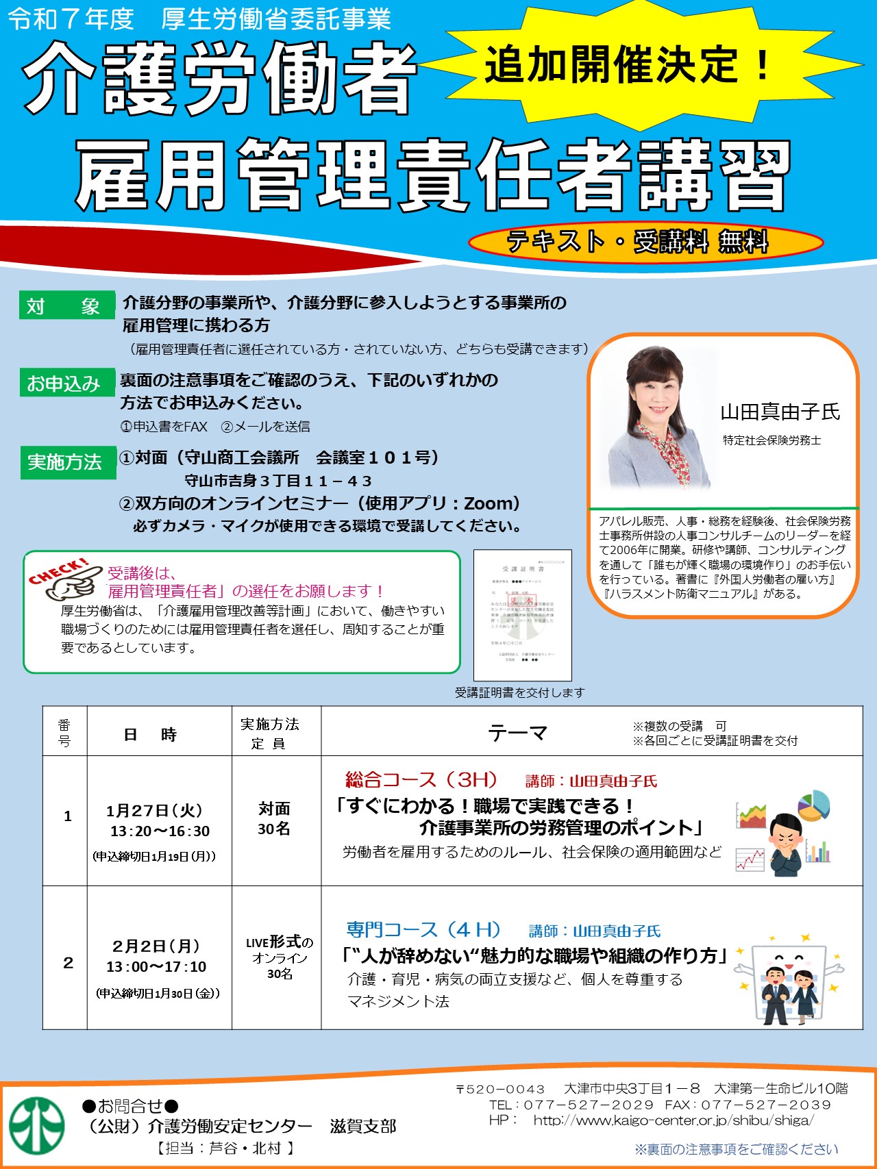 - 【追加開催決定!】厚生労働省委託事業「介護労働者雇用管理責任者講習」のご案内