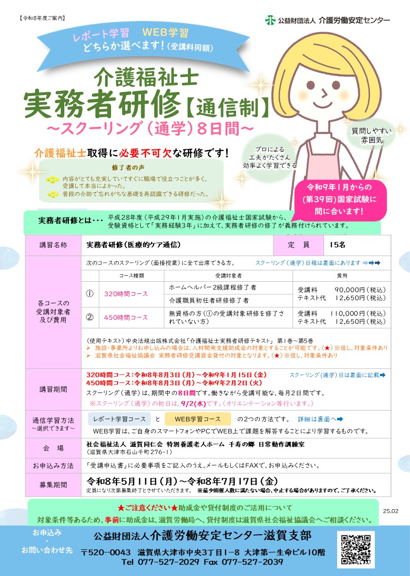 令和8年度 介護福祉士実務者研修【通信制】の受講生を募集します