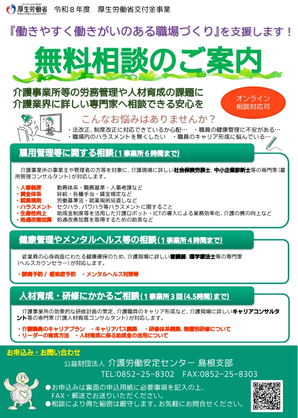FAX(0852-25-8303)または、メール(kaigoshimane@kaigo-center.or.jp)にてお申込みください。