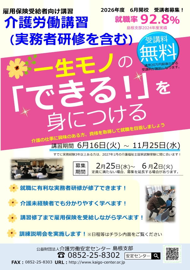 令和8年度 介護労働講習(実務者研修を含む)訓練説明会のお申込み