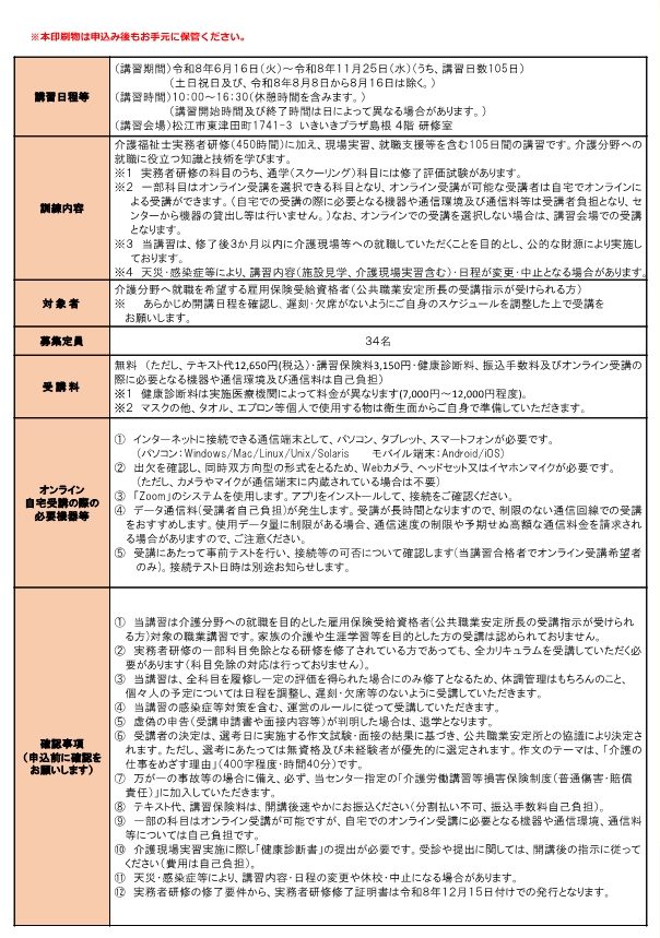 - 令和8年度 介護労働講習(実務者研修を含む)訓練説明会のお申込み