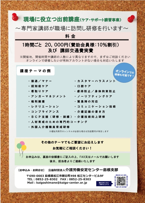 オーダーメイド型研修(ケア・サポート講習)のご案内