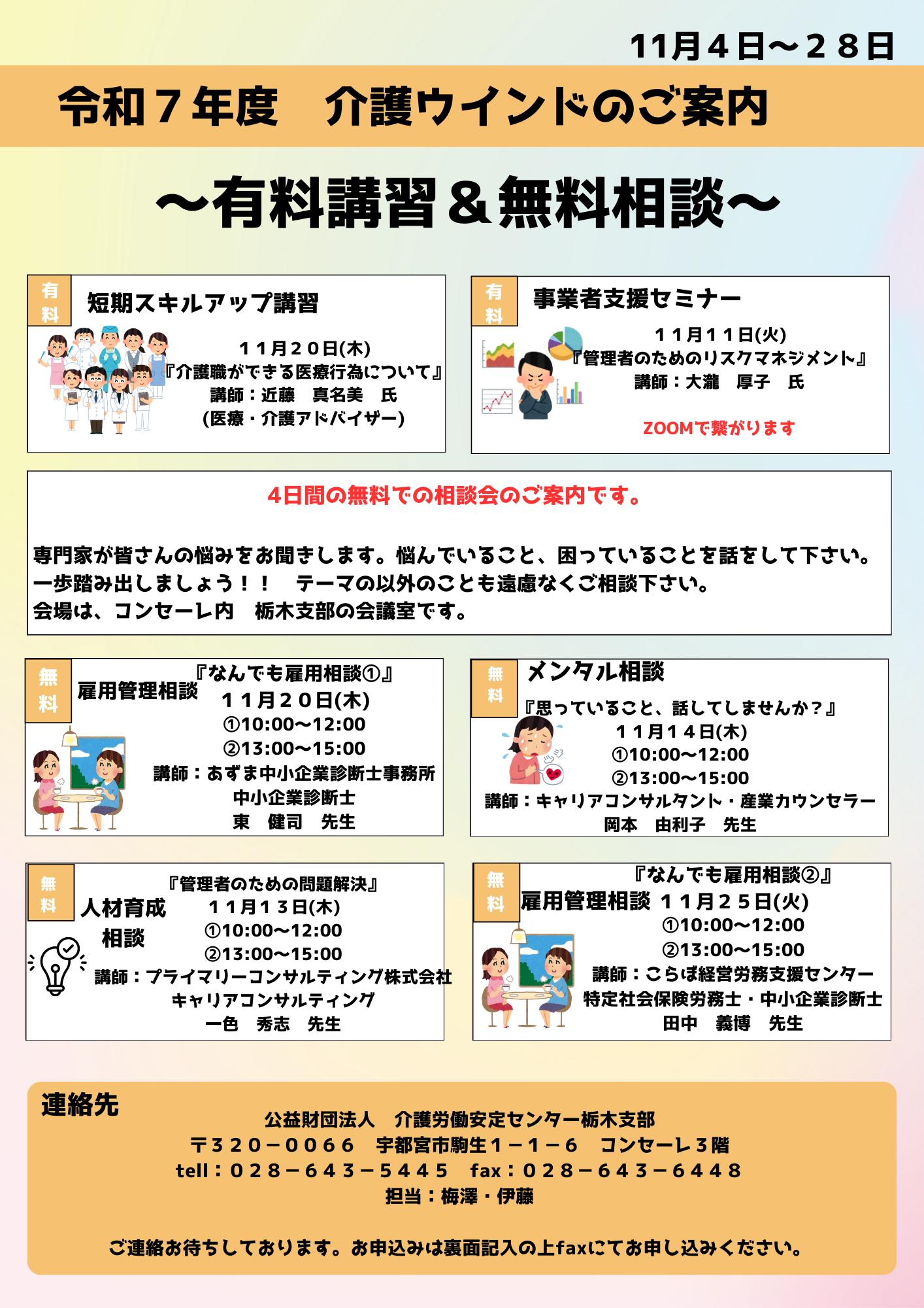 11月は、介護の月です。栃木支部でも、恒例のの「介護ウインド」として