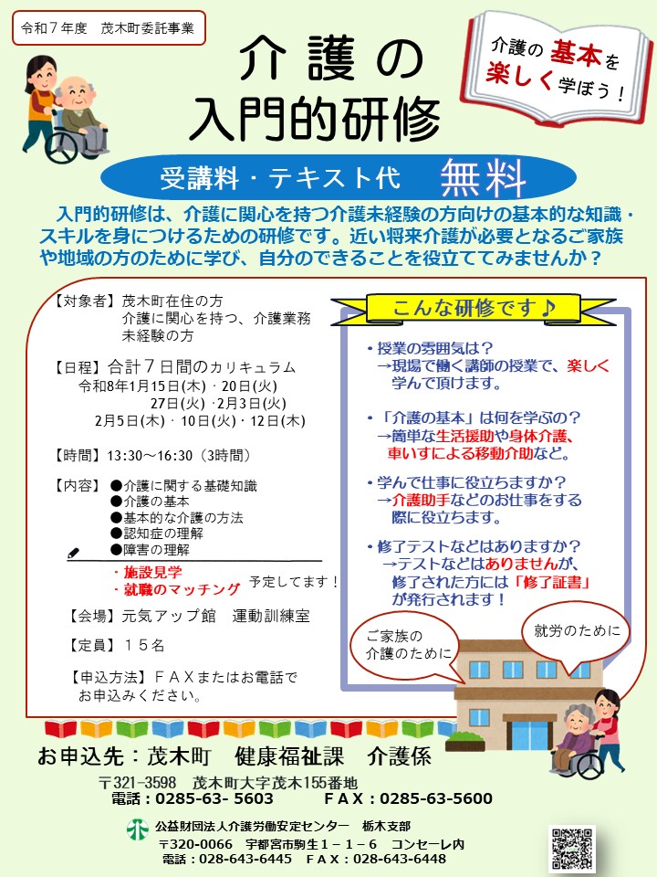 開講決定! 令和7年度「茂木町 介護の入門的研修」のご案内