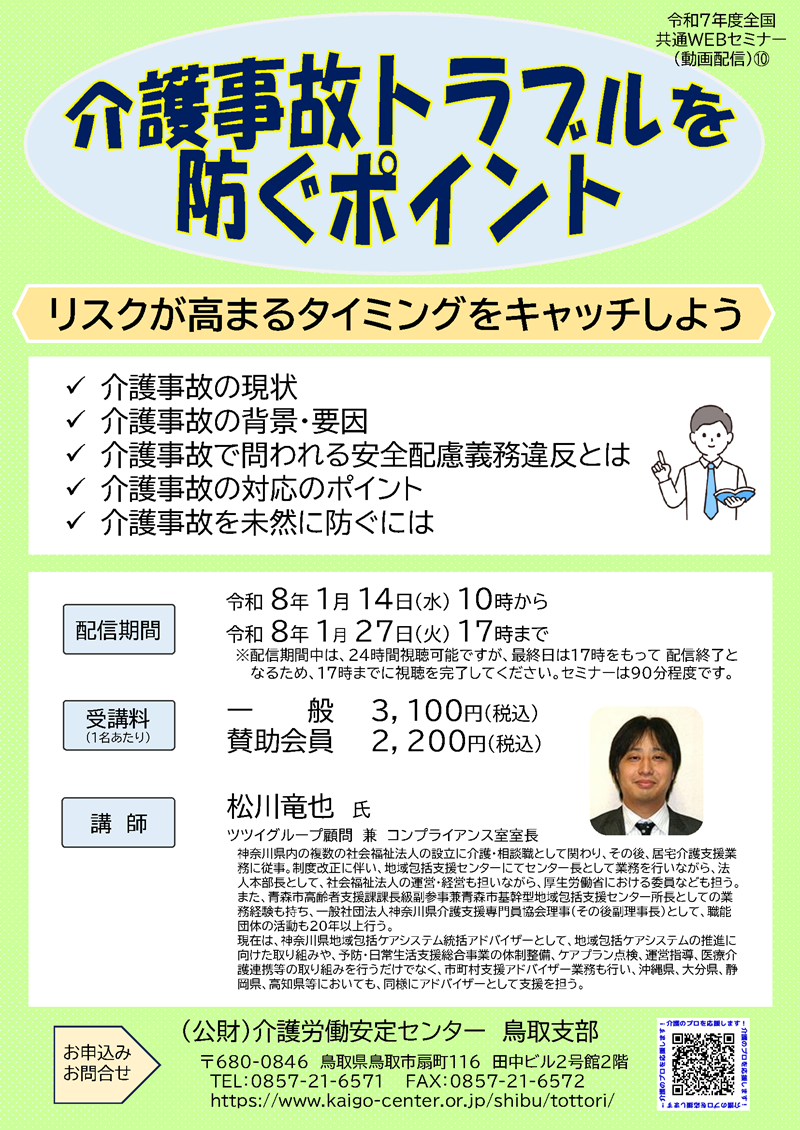 【募集中】1月WEBセミナー「介護事故トラブルを防ぐポイント」