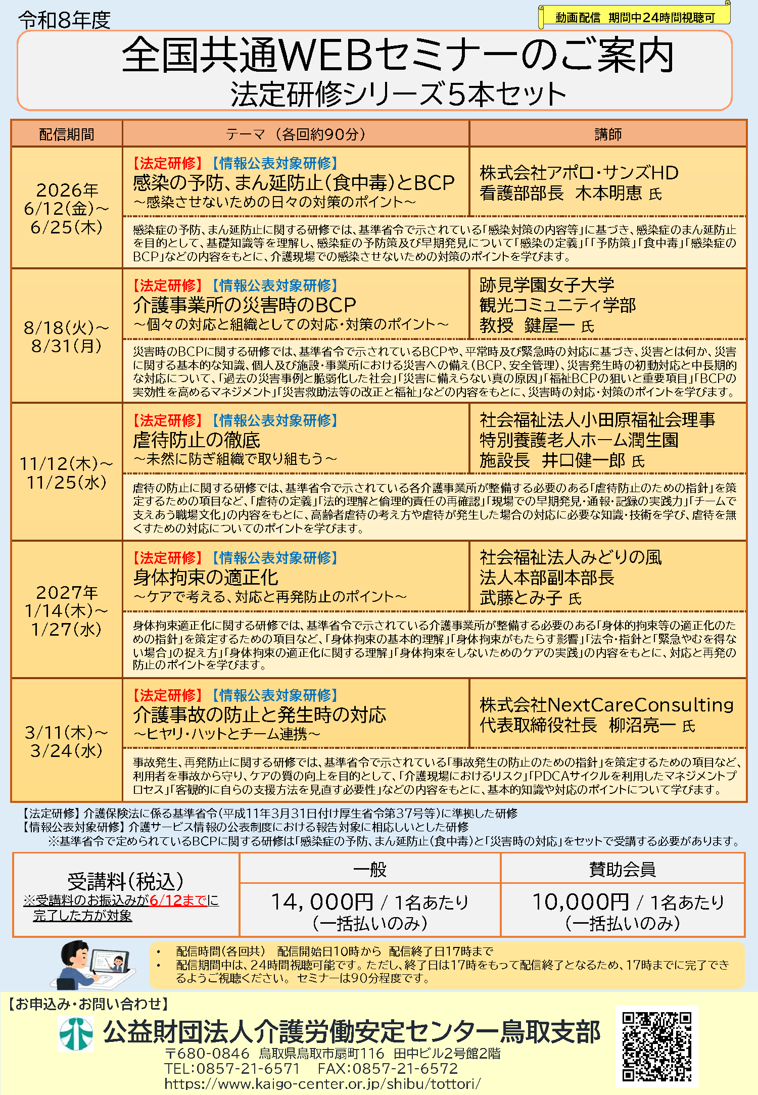 【募集中】WEBセミナー「法定研修シリーズ5本セット」