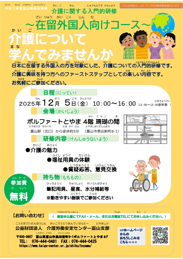 - ★令和7年度在留外国人向け「介護入門的研修」のご案内