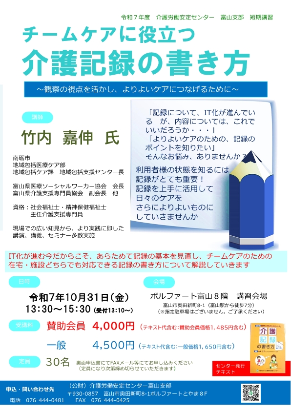 ※案内のちらし・申込書についてはこちら ⇒ R7介護記録の書き方.pdf