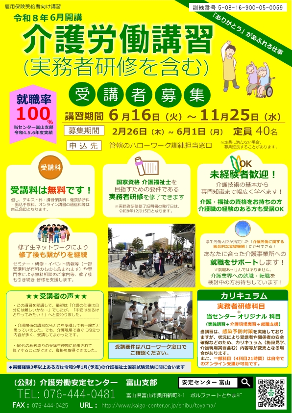 介護労働安定センター富山支部まで、お問い合わせください。