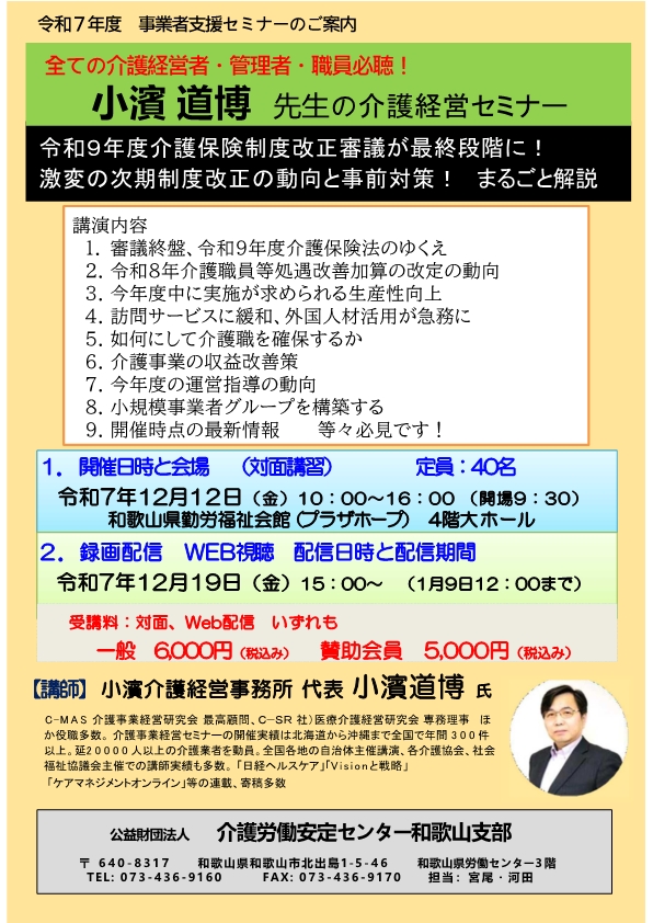 令和7年度 小濱道博先生の介護経営セミナー申込受付中です。
