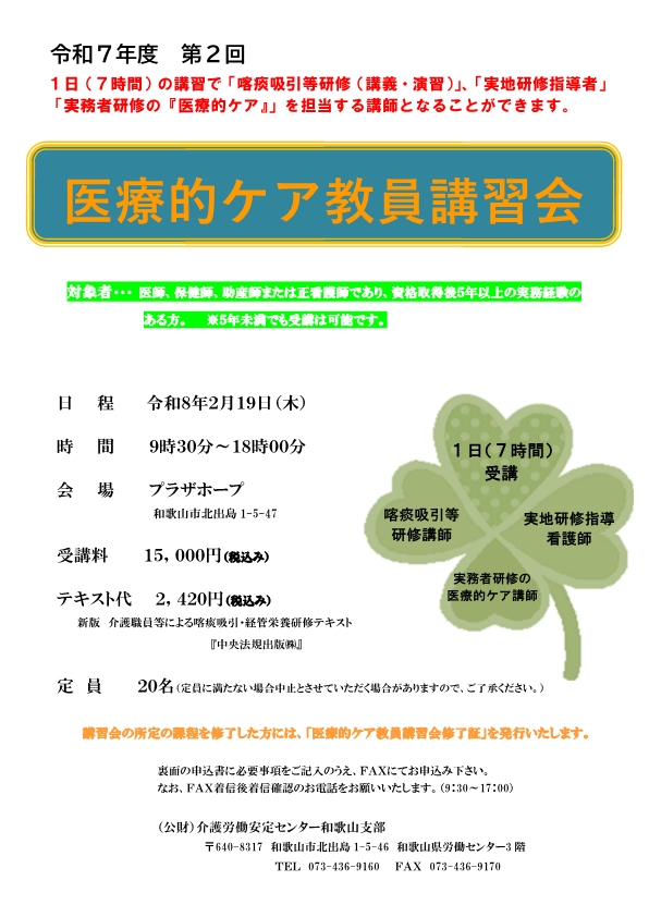 - 令和7年度 第2回医療的ケア教員講習会のお知らせ