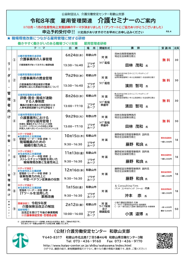雇用管理関連の講習を開催します。詳しくは こちらのチラシをご覧の上、FAXでお申込みください。