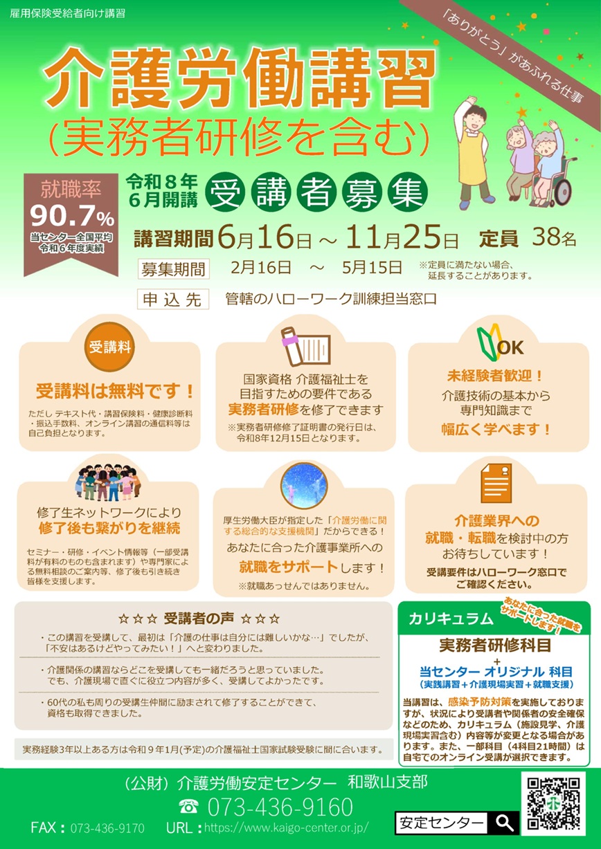 - 令和8年度介護労働講習(実務者研修を含む)受講者募集中です。