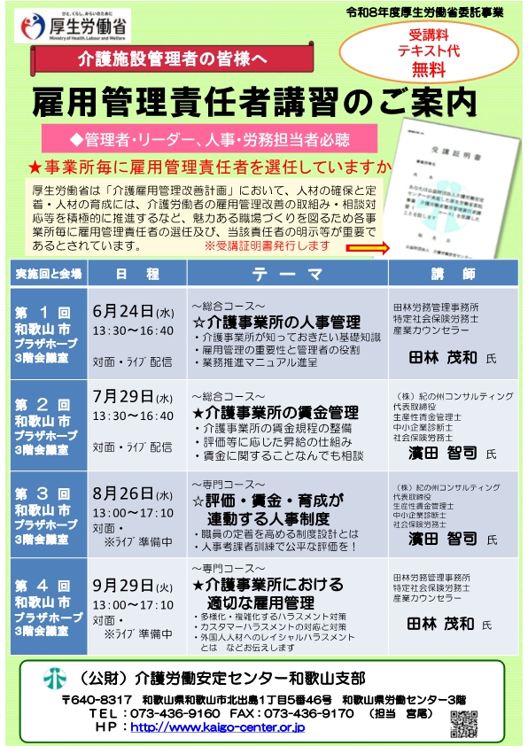 - 令和8年度雇用管理責任者講習のご案内