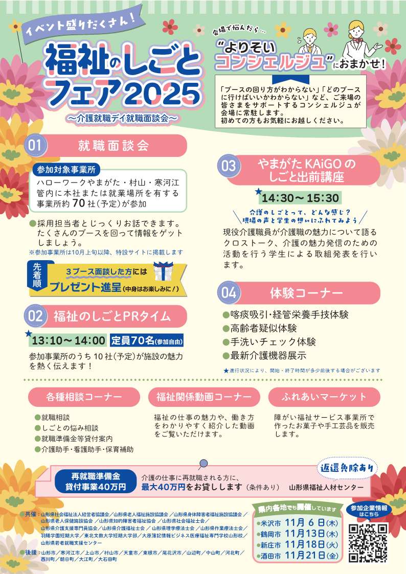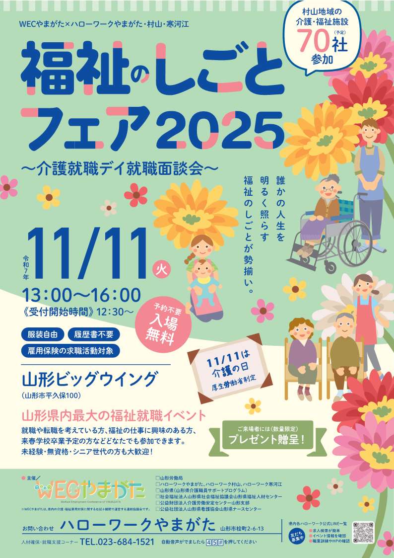 介護労働安定センター山形支部もWECやまがたの一員として参加しています。ぜひお越しください。