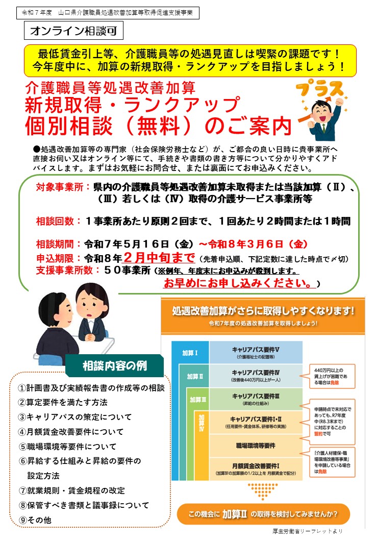 - ≪無料≫県委託:介護職員等処遇改善加算新規取得・ランクアップ個別相談のご案内