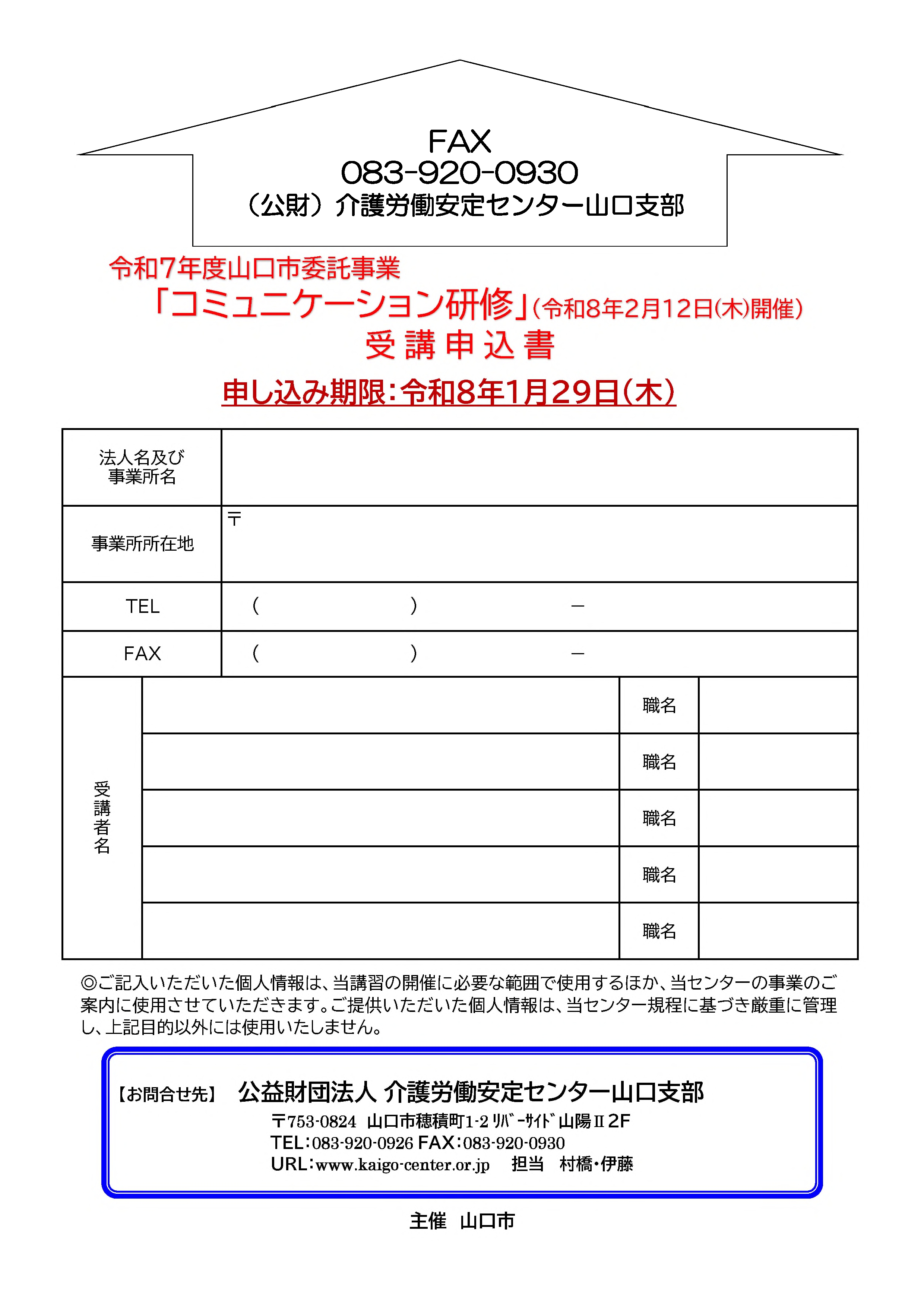 対象者:山口市内の介護サービス事業所の管理者及び職員の方
