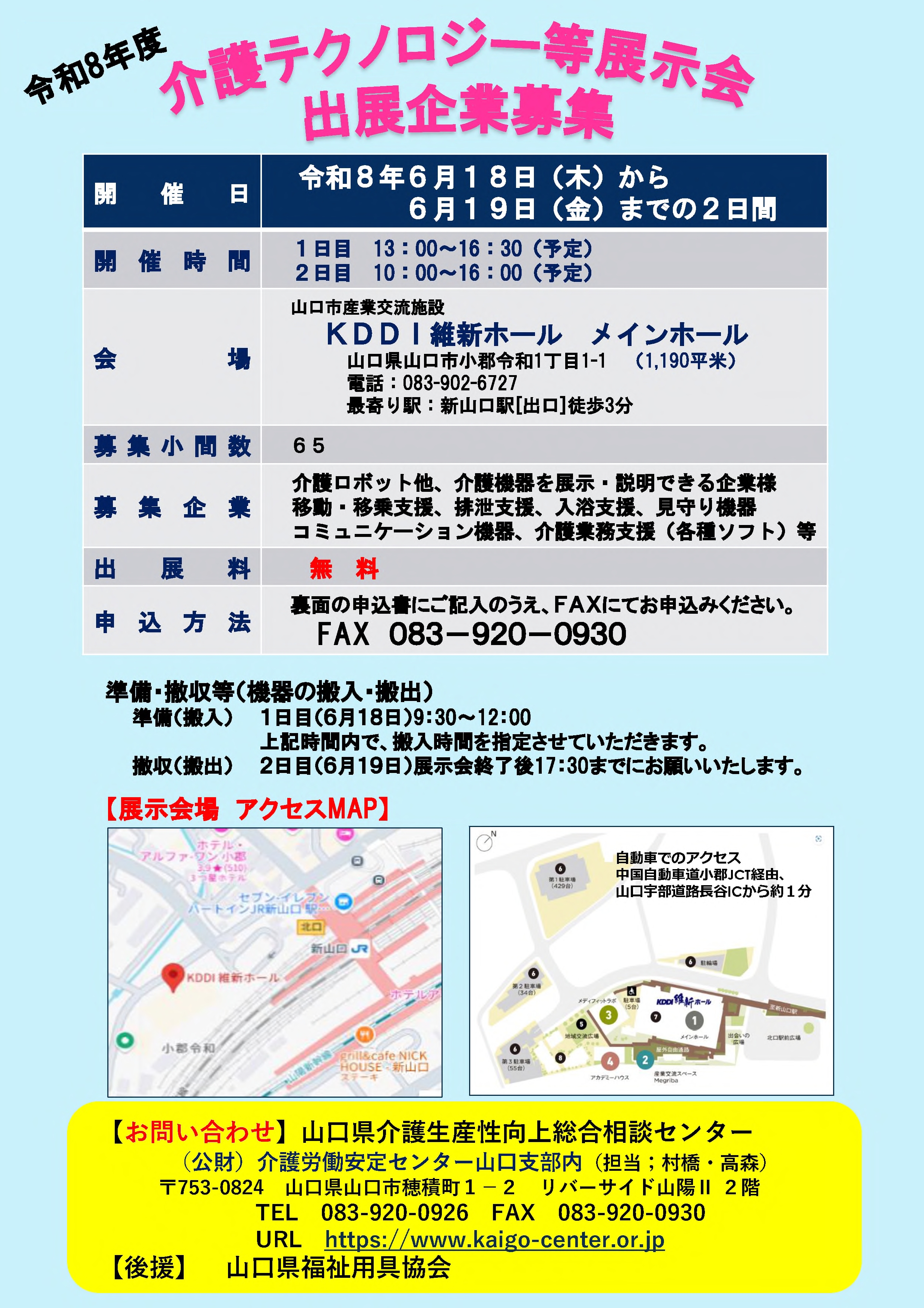 ★介護テクノロジー機器等展示会 出展企業を募集します!(6/18~19)★