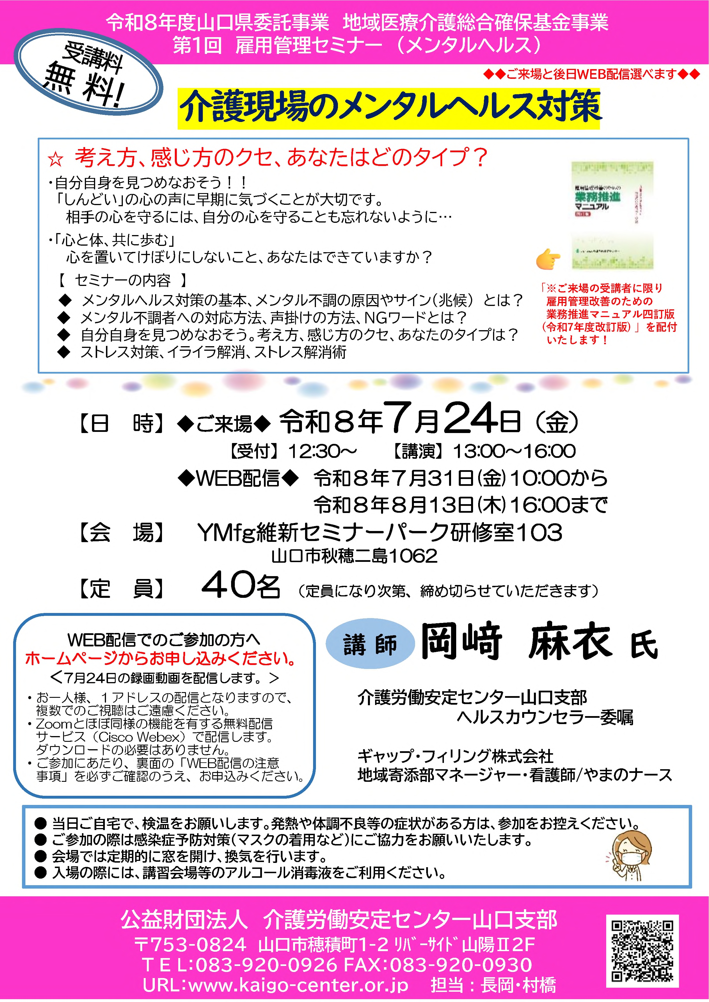◆令和8年度 山口県委託事業 第1回雇用管理セミナー 受講料無料!!