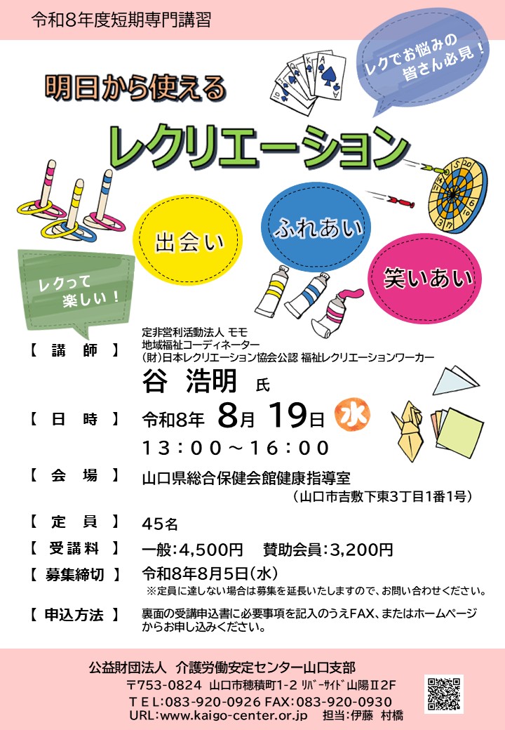 短期専門講習「明日から使える レクリエーション」