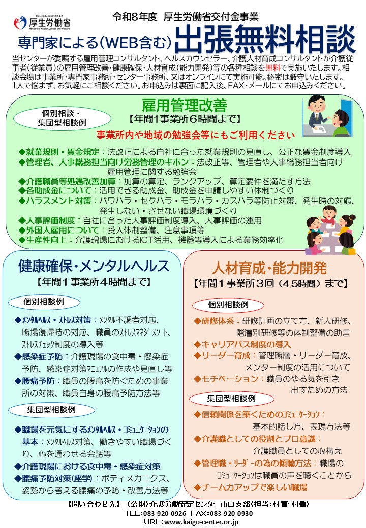令和8年度 厚生労働省交付金事業「専門家による出張無料相談」の受付を開始いたしました!