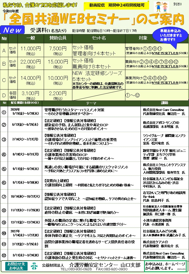 令和8年度 「全国共通WEBセミナー」の募集を開始しました!